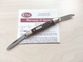A really lovely knife out of my own Collection. While I would be the first to agree that the quality of Case knives can vary, this particular example would delight the most fastidious collector. Made in 1982, this would be a perfect 'EDC' (Every Day Carry) or addition to a collection with near perfect 'walk & talk' and a nice firm snap on opening & closing. Main blade: 1-7/8 inches. Pen: 1-1/2 inches. Closed:3-1/8 inches. Delrin jigged bone scales. Whoever buys this will not be disappointed.