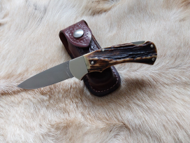 A lovely example of this full-size folder from the world renowned German Company. This particular knife was made in 1978 and sports some thick Sambar Stag, making for a hand filling hold. Sadly, no box or papers but a very nice leather belt sheath. The blades shows light scratches but nothing serious. Very good cond. £195 inc. p&p.