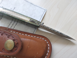 Complete with Certificate and original leather pouch. Blade:2-3/4 inches. Closed:3-3/4 inches. This is a lot of knife for the money!