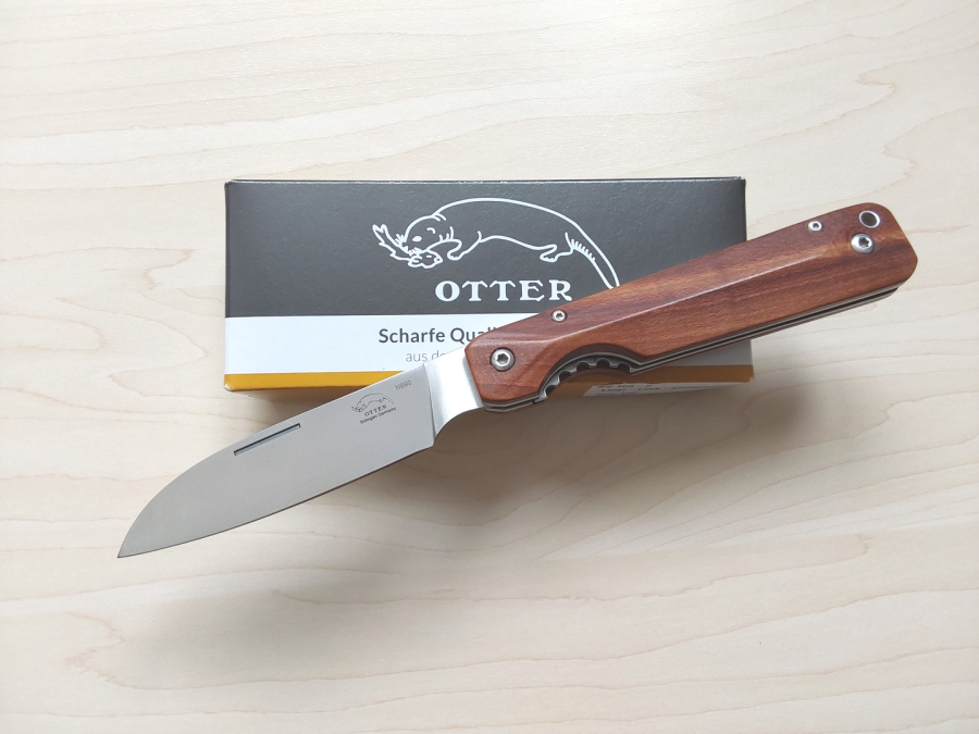 A high quality pocket knife, with a solid liner-lock mechanism, from a well respected German maker. While Otter offer a range of knives at different price points, this Sheepfoot model is obviously from the higher end and, in fact, may now be discontinued? Made from Premium Bohler N690 s/steel and handled in Plum wood this hand crafted folder would be a pleasure to own. Blade:90mm. Closed:115mm. Complete with original box. As new, unused condition. £175 inc. UK p&p.